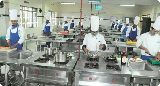 Basic training kitchen totally integrated with the latest cutting- edge catering equipment and appliances. The basic training kitchen is mainly used to expose students to the practice of cooking. Since learning the fundamentals, students go on to a specialty in the art of cooking, with this kitchen boasting the best in state-of-the-art appliances and hotel kitchen simulation. Here, elaborate dishes are prepared. Regional and international cuisines and bakery skill sets are indeed being considered.